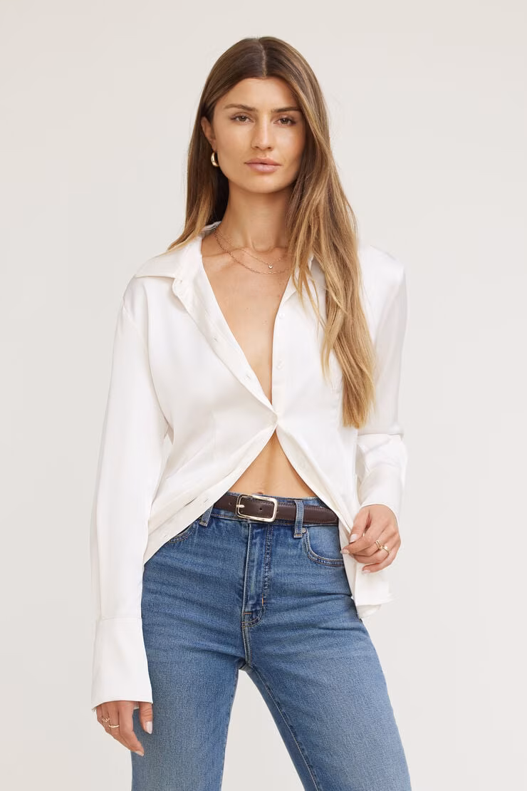 Eva Cinched Satin Shirt – Dynamite Clothing