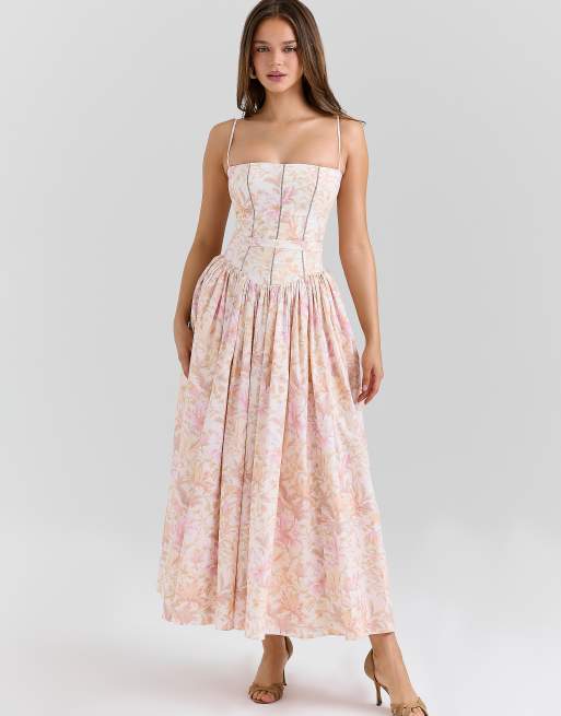 House of CB Ysabella peach floral print stretch cotton midi sundress Available on ASOS and other retailers