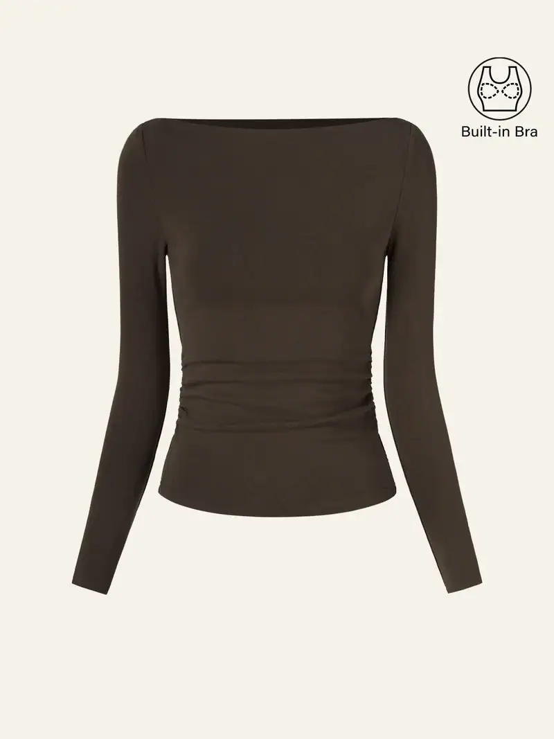brown boatneck top