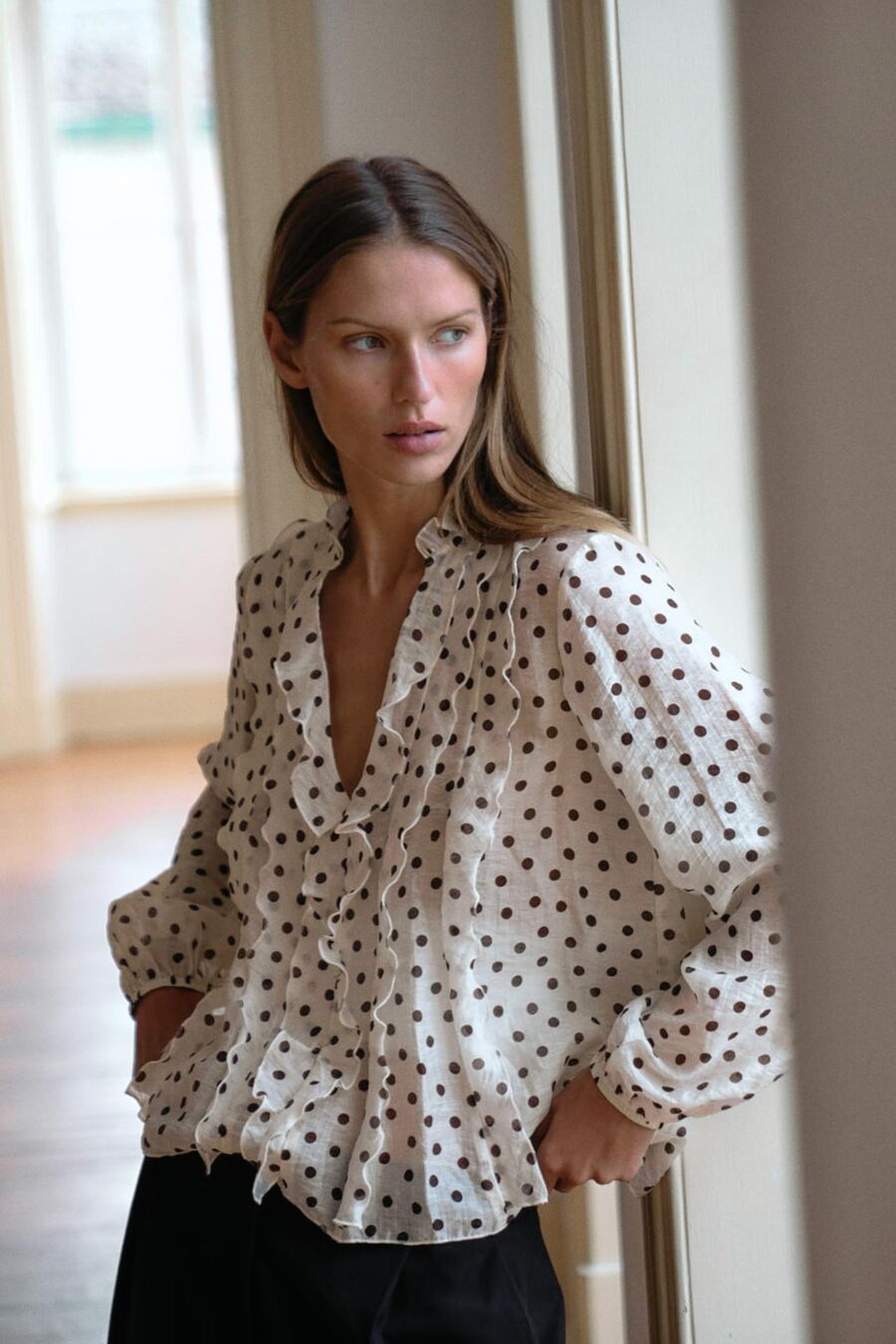 ecru polka dot blouse